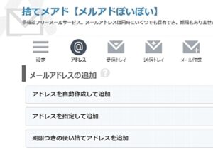 簡単・便利・無料の「捨てメアド [ メルアドぽいぽい ] 」 を利用してみましょう。